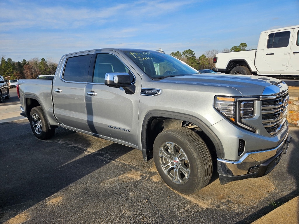 Power, comfort, and value converge in this 2025 GMC Sierra 1500 SLT â€" a rugged 4WD pickup with only 33,052 miles and the proven 5.3L V8 gasoline engine. Located in De Queen, AR, this GMC Sierra delivers the capability you need for work and weekend adventures while offering modern convenience and premium features that make every drive enjoyable. Under the hood, the V8 provides confident towing and passing power, paired with a smooth automatic transmission and a responsive 4WD system for traction in all conditions. Inside, Automatic Climate Control keeps the cabin comfortable year-round, and the Heated Steering Wheel adds an extra touch of luxury on chilly mornings. Enjoy clear hands-free calls and seamless audio streaming with Hands Free Bluetooth and tune into XM Radio for endless entertainment on the road. Safety and convenience are prioritized with a Back-Up Camera for easy maneuvering and parking, plus the spacious, well-appointed SLT interior offers a refined ride for driver and passengers. Whether hauling, towing, or cruising, this GMC Sierra 1500 SLT blends utility with upscale features. This 2025 GMC Sierra 1500 SLT in De Queen, AR, is priced to sell and offers the best price in the area â€" unbeatable value for a low-mileage, well-equipped V8 4WD truck. Contact us today to schedule a test drive and experience this versatile GMC Sierra for yourself.