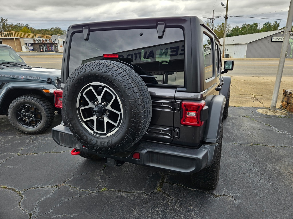 2024 Jeep Wrangler Rubicon - 31,653 miles - De Queen, AR Ready for adventure, this 2024 Jeep Wrangler Rubicon with 31,653 miles offers legendary off-road capability and modern convenience. Powered by a robust V6 3.6L gasoline engine and equipped with 4WD, it’s built to handle trails, highways, and everything in between. Located in De Queen, AR, this Jeep Wrangler Rubicon is priced to move â€" offering the best price in the area for buyers seeking value and performance. Standout features include Hands Free Bluetooth for seamless phone and audio connections, Android Auto integration for navigation and media, and a Back-Up Camera to make parking and hitching easier. Safety is prioritized with Forward Collision Warning, while Automatic Climate Control keeps the cabin comfortable on every drive. The Rubicon trim adds heavy-duty off-road hardware, making this Jeep ideal for outdoor enthusiasts who demand capability and comfort. This pre-owned 2024 Jeep Wrangler Rubicon combines proven engineering with tech-forward amenities and competitive local pricing. Whether you’re commuting, towing, or exploring backcountry routes, this Jeep provides confidence and capability. Visit De Queen, AR to test drive this Rubicon and take advantage of the best price available â€" a smart buy for drivers who want rugged performance and modern features in one iconic SUV.
